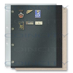 Лист для значков. Войлок чёрного цвета с прокладочным листом из прозрачного ПВХ и картонным разделительным листом. Наружный формат 200x250 мм. Подходит к папкам-переплётам Optima.