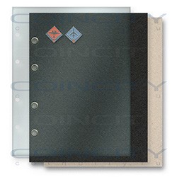 Лист для значков. Войлок чёрного цвета с прокладочным листом из прозрачного ПВХ и картонным разделительным листом. Наружный формат 245x310 мм. Подходит к папкам-переплётам Grande.