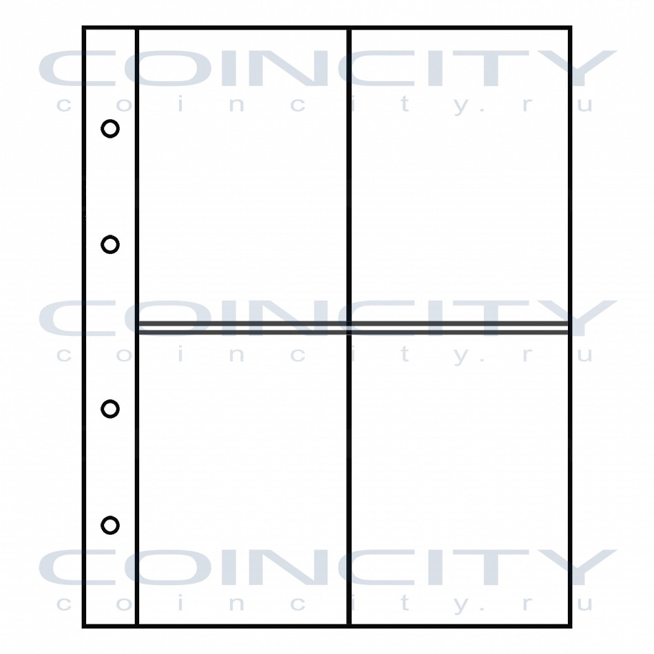 Лист для карточек из прозрачного пластика. 4 кармана размером 87x118 мм. Наружный формат 200x250 мм. Подходит к папкам-переплётам Optima.